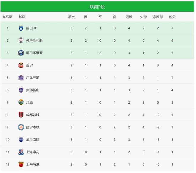随着首个比赛日的结束,最新亚冠积分榜乱了: